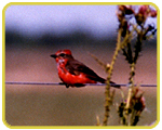 Churrinche (Pyrocephalus rubinus rubinus). Habita áreas rurales. Nidifica en nuestra zona durante el verano y emigra en el invierno. |